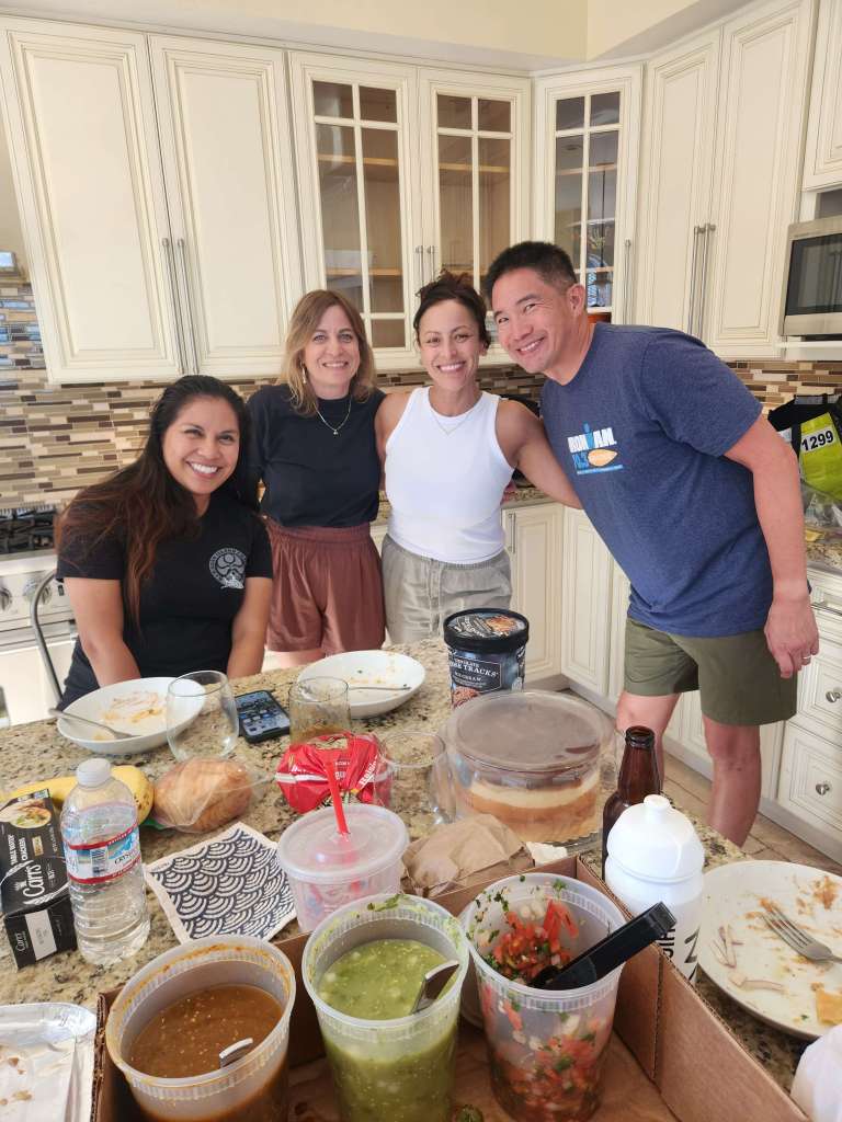 Post Race Party back at the VRBO. Tacos. Carne Asada, Chicken. Rice, Beans, Chips. Boston Cream Pie. Lots of drinks.