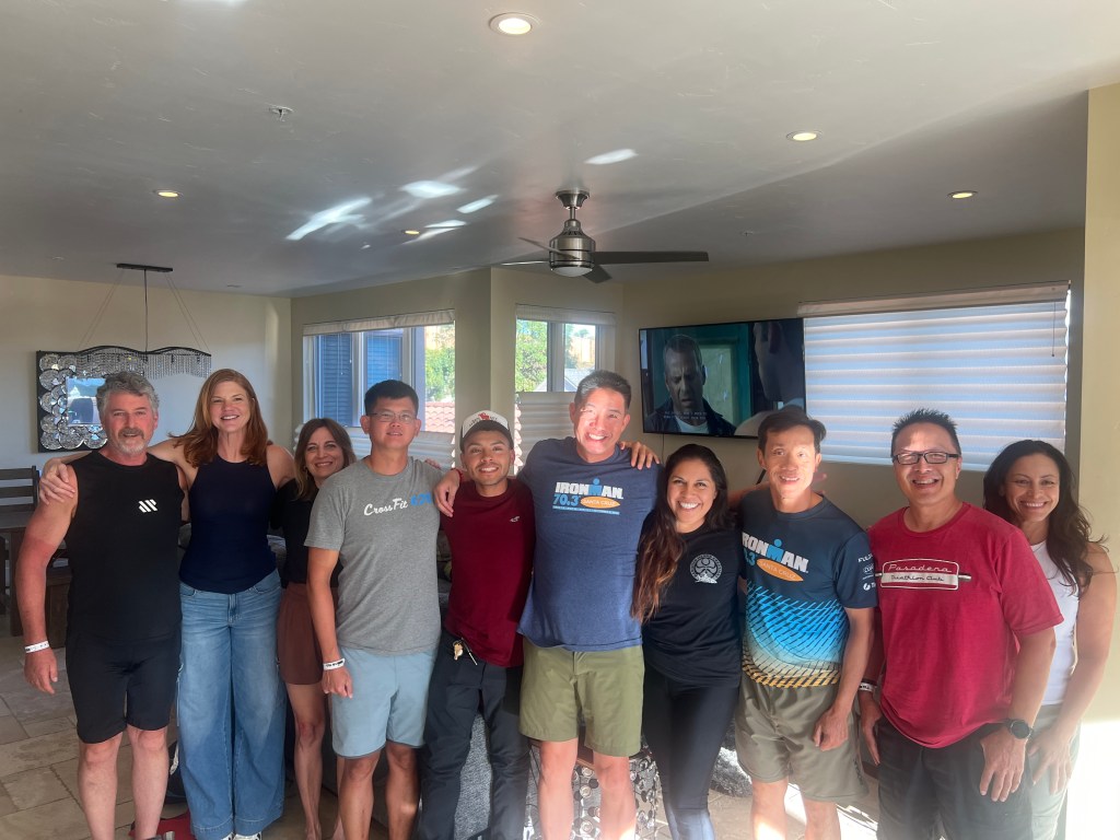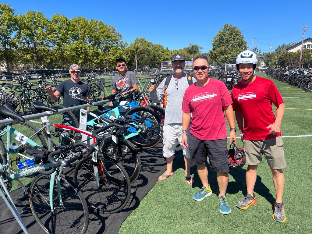 Group Check In at 10a. The group checks into together gets to rack their bikes together. We also sat in the Athlete Briefing. We walked back to the VRBO, put the stickers on our bikes and walked the bikes to Transition. Saturday night was quiet before the race.