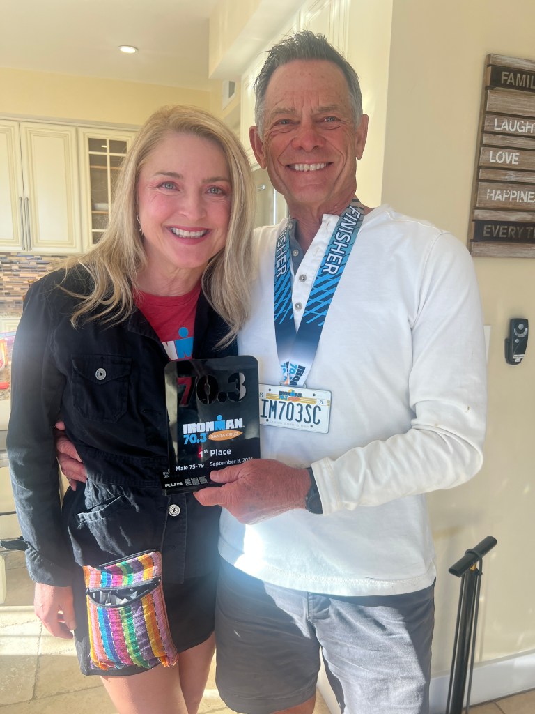 Post Race: I walked my bike and swim gear back to the VRBO. Half a block. Awesome. Took a shower. Suzie returned to the VRBO with Julian’s bike and swim gear. What an awesome fiancee! She was going back to transition to pick up Alvin’s bike and swim gear. What an awesome friend! I walked down with her and walked Alvin’s bike back. Then we walked to the run course and cheer everybody on. We saw Michael H., Eric O., Kevin, Julian. Then I walked to the finish line to take pics. I saw John, Paul, Alvin, Marisa, and Carrie come in.